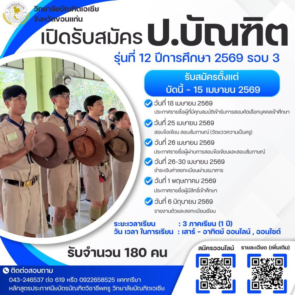 📌เริ่มรับสมัครตั้งแต่วันที่ 10 มีนาคม - 15 เมษายน 2569