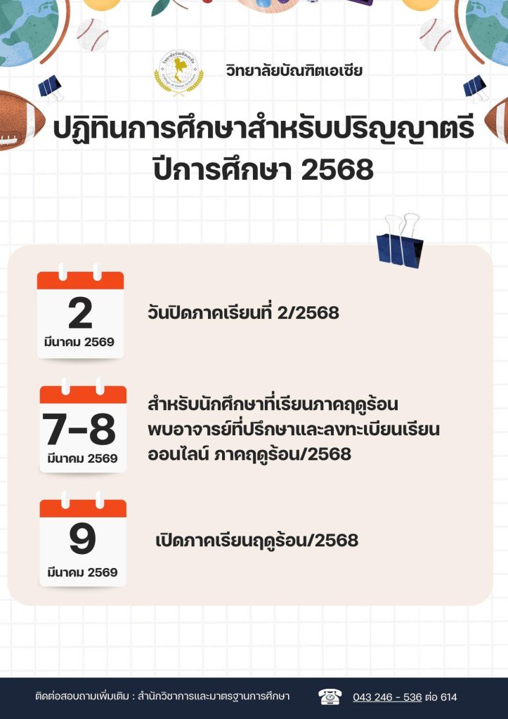 📌 ประกาศปฏิทินการศึกษา ระดับปริญญาตรี ปีการศึกษา 2568