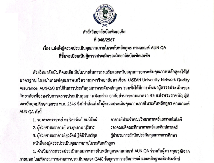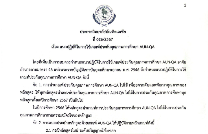 การประกันคุณภาพการศึกษาตามเกณฑ์ AUN - QA