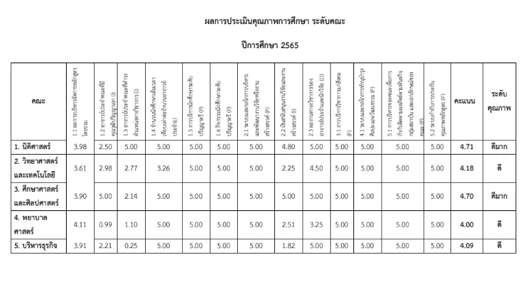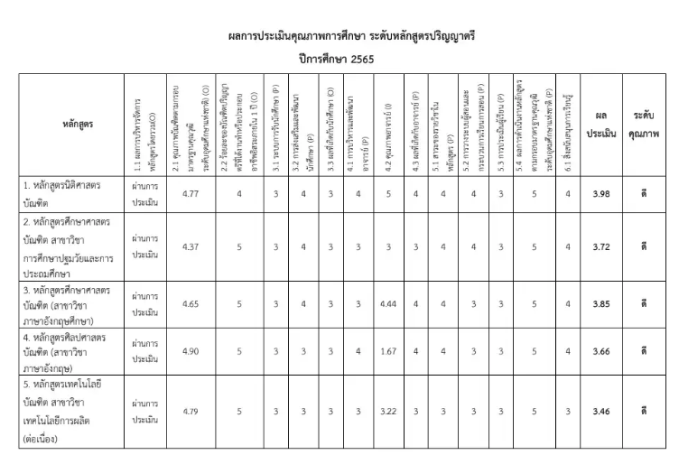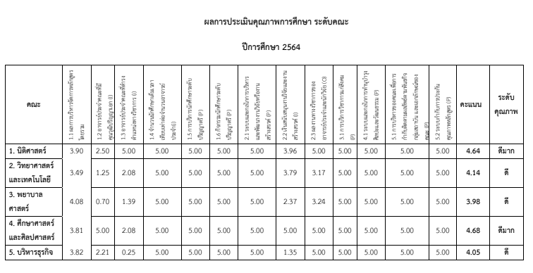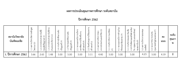 ผลการประเมินคุณภาพการศึกษาภายใน